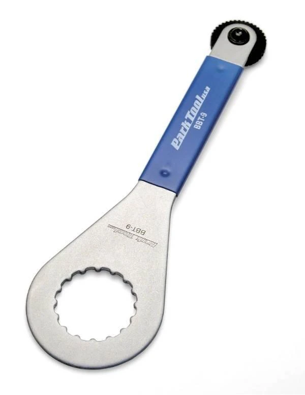The BBT-9 is used to remove and install Shimano® Hollowtech II, Campagnolo Ulta-Torque, and many other external bearing crankset bottom brackets. One end of the BBT-9 securely engages the 16 notches of the bottom bracket cups. The other end of the tool engages the 8 internal splines of the crank arm adjustment cap.