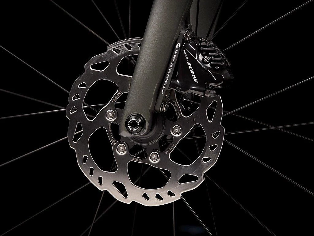 The Emonda Sl 5 comes equipped with the 2×11 Shimano groupset. This is very much the entry-level racing groupset with all the trickle-down shifting performance of mechanical Dura-Ace and Ultegra, just a little heavier. The compact chainset and 11-30t cassette balances range with small gearing jumps, to make it easy to find a comfortable cadence whether you’re smashing a hill climb, blasting along the flats or powering down a descent. Hydraulic disc brakes provide excellent stopping power in the dry and the wet, so you can easily keep your speed in check on fast descents. The 28c tyres have a puncture-proofing layer and enough volume to take the sting out of poor roads while still being lightning fast.